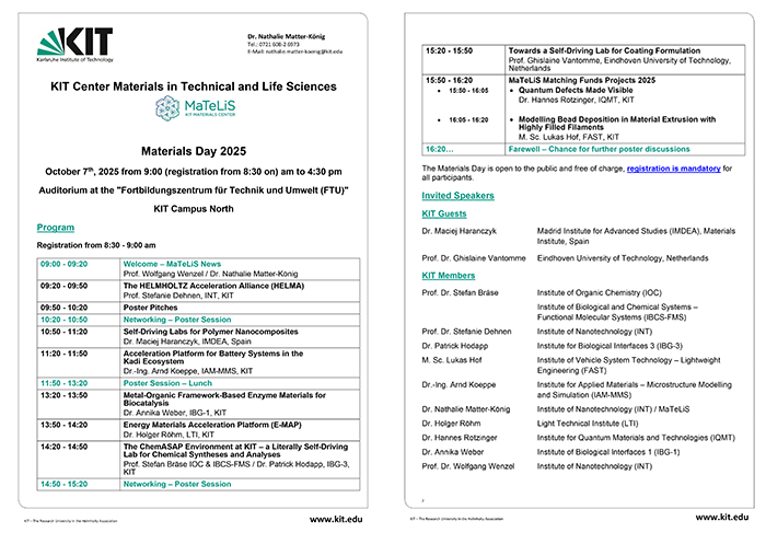 Materials Day, October 7th, 2025 - Event of the KIT Materials Center (MaTeLiS)